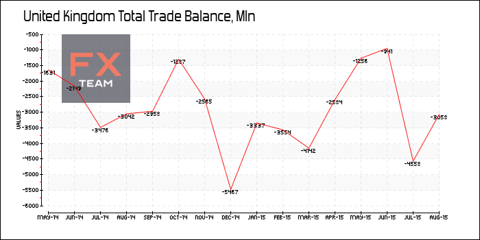 Общий дефицит торгового баланса Великобритании снизился до £3,3 млрд. в августе по сравнению с £4,4 млрд. в июле за счет рекордно высокого объема продаж автомобилей и увеличения объемов экспорта продуктов химии. Тем не менее, дефицит превысил прогнозируемый уровень £2,2 млрд.