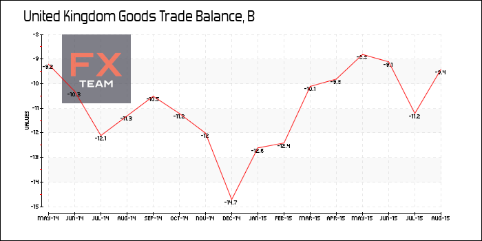 По данным Национального статистического управления, дефицит баланса видимой торговли Великобритании составил £11,1 млрд. за август 2015 г. по сравнению с дефицитом в размере £12,2 млрд. месяцем ранее.