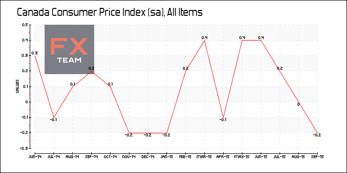 В месячном выражении потребительские цены в Канаде упали на 0,2% в сентябре. В августе данный показатель оставался без изменений на прежнем уровне.