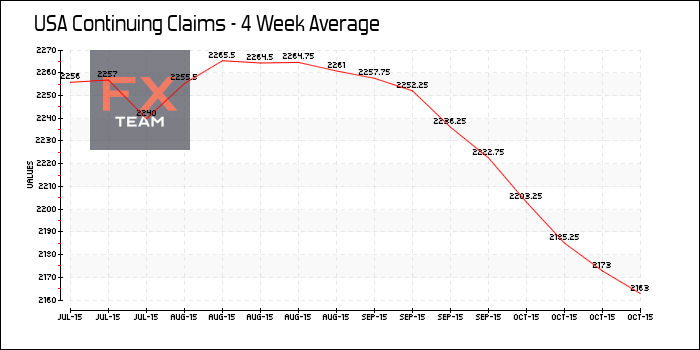 Число повторных заявок на получение пособия по безработице увеличилось за неделю к 24 октября до 2 163 000 по сравнению с 2 146 000 неделей ранее при прогнозе снижения до 2 140 000.