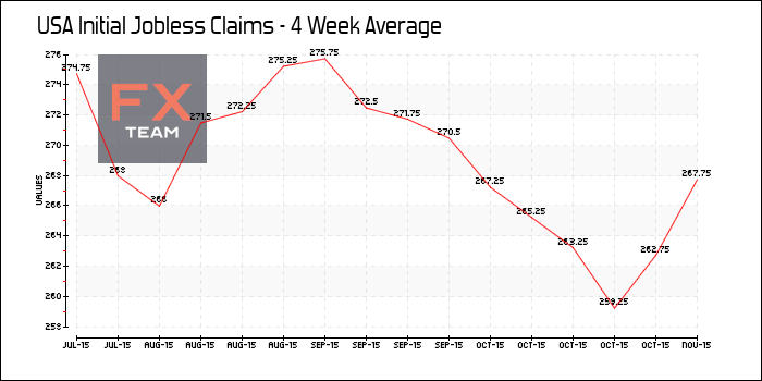 4-недельная средняя первичных обращений за пособием по безработице составила 267 750 по сравнению с уровнем 262 750 на предыдущей неделе.