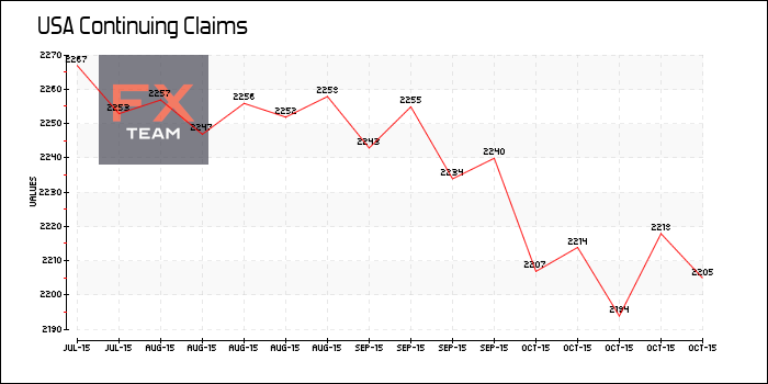 Число повторных заявок на получение пособия по безработице увеличилось за неделю к 31 октября до 2 174 000 по сравнению с 2 169 000 неделей ранее при прогнозе снижения до 2 165 000.