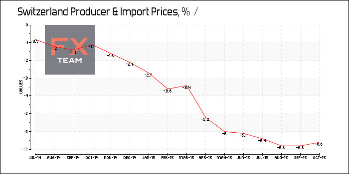 В годовом выражении цены производителей и импорта в Швейцарии упали на 6,6% в октябре по сравнению со снижением на 6,8% в сентябре.
