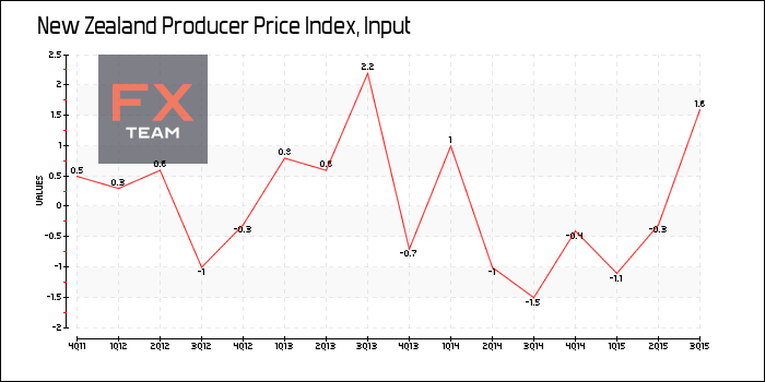 По данным Статистического управления Новой Зеландии, индекс закупочных цен производителей увеличился на 1,6% за третий квартал 2015 года. Экономисты прогнозировали повышение показателя на 0,1%. Напомним, что в первом квартале цены упали на 1,1%, а во втором на 0,3%.