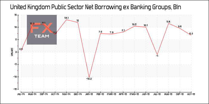 Чистый объем заемных средств государственного сектора без учета банковских групп повысился на £1,1 млрд. до £8,2 млрд. в октябре по сравнению с £7,1 млрд. в аналогичным периоде прошлого года.
