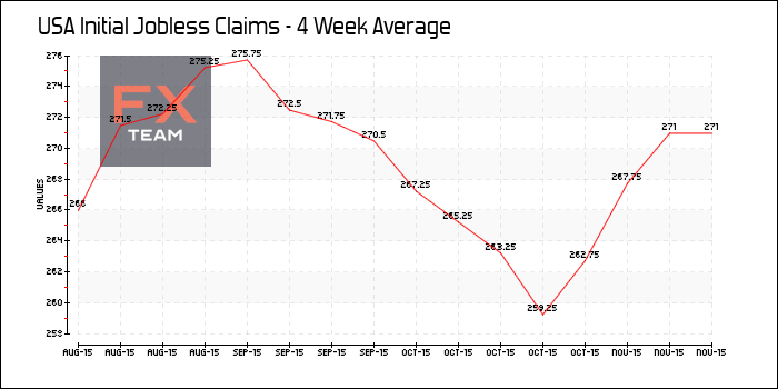 4-недельная средняя первичных обращений за пособием по безработице составила 271 000, также как и на предыдущей неделе.
