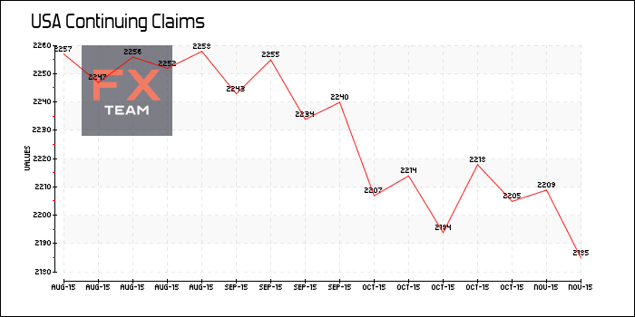 Число повторных заявок на получение пособия по безработице увеличилось за неделю к 14 ноября до 2 207 000 по сравнению с 2 173 000 неделей. Экономисты прогнозировали снижение показателя до 2 140 000.