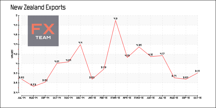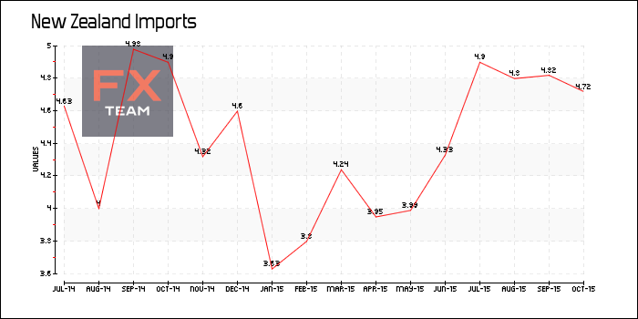 Объем экспорта в Новой Зеландии снизился на 4,5% до NZ$3,83 млрд., в связи с падением на 18% экспорта сухого молока, масла и сыров. В то же время, объем импорта сократился на 2,2% до NZ$4,79 млрд. в октябре благодаря снижению стоимости импортируемого автомобильного и авиационного топлива.