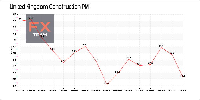 Индекс PMI для строительного сектора Великобритании снизился до отметки 55,3 в ноябре по сравнению с 58,8 в октябре.