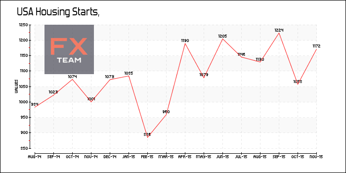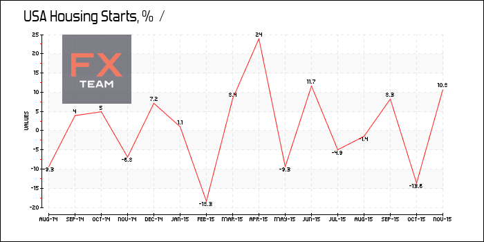 По данным Министерства торговли США, число закладок новых фундаментов жилых домов в США повысилось на 10,5% до отметки 1,!73 млн. в ноябре.