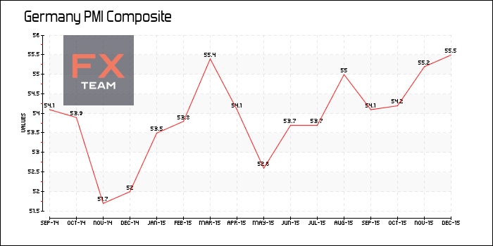 Композитный индекс PMI составил 54,9 пункта в декабре по сравнению с 55,2 пункта в ноябре при прогнозе 55,0 пункта. Несмотря на снижение в отчетном месяце, среднее значение показателя за четвертый квартал является самым высоким со второго квартала 2014 года.