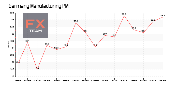 По предварительной оценке, индекс деловой активности в производственном секторе Германии (FlashManufacturingPMI) вырос в декабре до максимального уровня за последние четыре месяца, сообщает MarkitEconomics. Показатель составил 53 пункта в декабре 2015 г. по сравнению с 52,9 пункта в предыдущем месяце. При этом ожидалось, что индекс снизится до отметки 52,7 пункта.