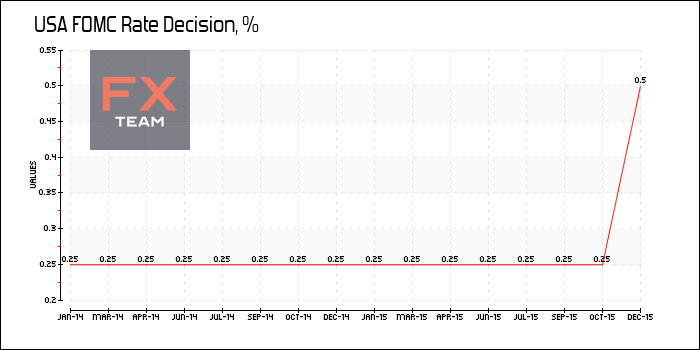 Члены Комитета по открытому рынку проголосовали в соотношении 10-0 за повышение ставки рефинансирования на четверть процента до отметки от 0.25% до 0,5%.