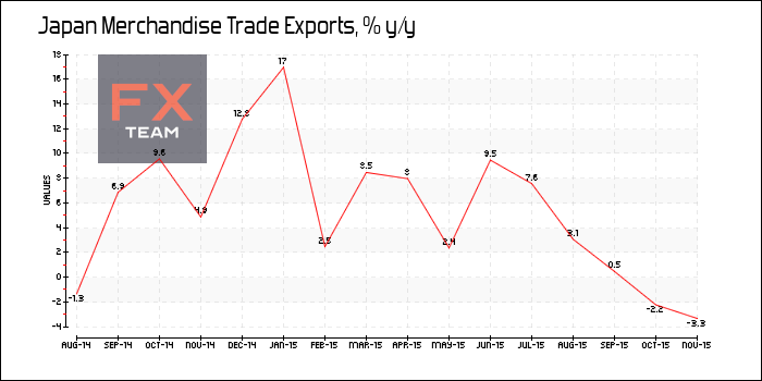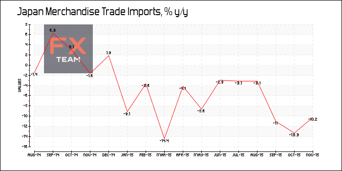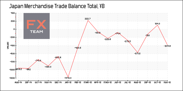 По данным Министерства финансов Японии, дефицит торгового баланса упал в годовом выражении на 58% до 379,7 млрд. йен в ноябре.