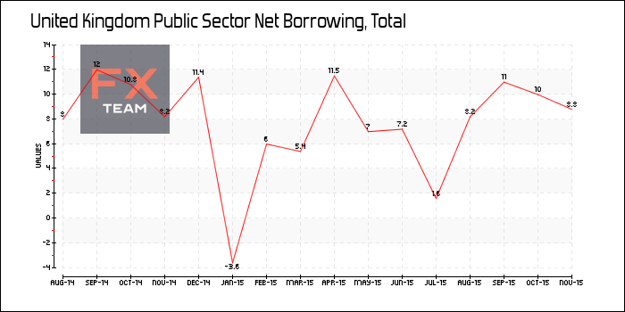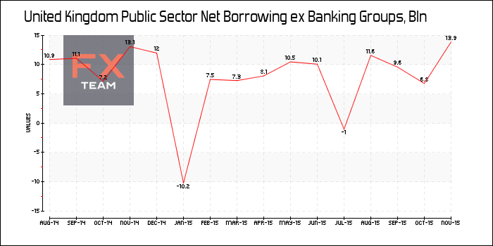 Чистый объем заемных средств государства без учета банковских групп вырос за ноябрь до 14,2 млрд. фунтов стерлингов по сравнению с 7,4 млрд. фунтов стерлингов в октябре при прогнозе 11,8 млрд. фунтов стерлингов.