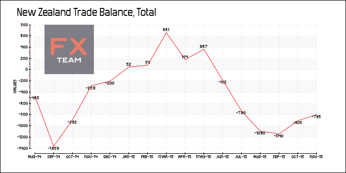 Дефицит баланса внешней торговли Новой Зеландии составил 779 млн. новозеландских долларов в ноябре 2015 г. по сравнению с дефицитом в размере 905 млн. долларов в предыдущем месяце. Аналитики прогнозировали снижение дефицита до 812 млн. долларов.