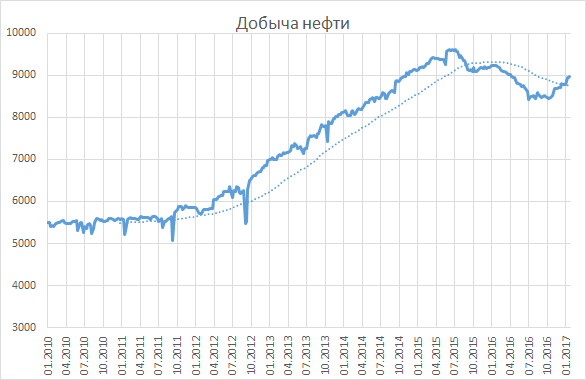 Запасы сырой нефти в США потихоньку растут третью неделю подряд. И причина тут вовсе не в низком потреблении. Как раз наоборот, сильный потребительский спрос и холода в США должны отрицательно сказываться на запасах. Тем не менее, за три недели они выросли на 9.3 млн. баррелей и уже поднялись к уровням середины ноября. Примерно в эти же дни годом ранее на рынках разговоры были только о том, как много нефти в хранилищах США. Сейчас их на 5.3% больше, чем ровно год назад. Кроме того, нам известно, что несмотря на ограничения добычи, в ОПЕК сейчас добывают больше нефти, чем ровно год назад, и в России тоже. В США добыча растёт, уже достигая 8.96 млн. барр/день. Хотя это ниже уровня 9.2 млн. ровно год назад, это выше летних уровней около 8.5 млн.