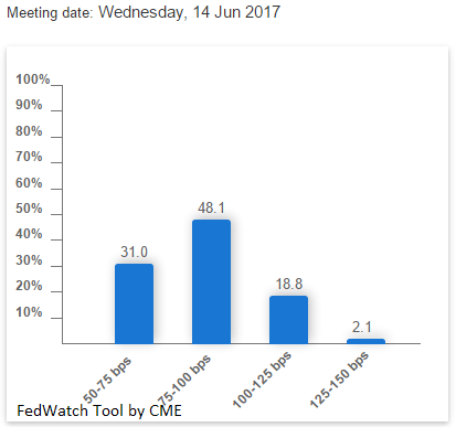 Прямо сейчас вероятность мартовского повышения оценивается менее чем в 20%. Но уже для июня вероятность повышения составляет 69%. С одной стороны, это весьма однозначные ожидания, но с другой – ещё достаточно пространства для роста этой вероятности, что в свою очередь потянет за собой переоценку курса доллара.