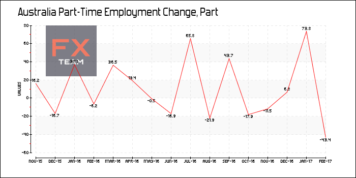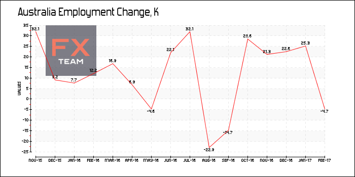Австралийские данные по занятости оказались неожиданно слабыми. В отличие от релиза месячной давности, где был хотя бы номинальный повод – общий прирост числа занятых и снижение уровня безработицы – на этот раз статистика оказалась более мрачной. Уровень безработицы поднялся с 5.7% до 5.9%, число занятых снизилось на 6.4 тыс. Слабым утешением в данном случае является, что число занятых на полный рабочий день выросло на 27.1 тыс. ведь месяцем ранее было сокращение сразу на 44.1 тыс. Последнее время рост уровня безработицы идёт за счёт увеличения численности рабочей силы, но не в этот раз: увеличение составило 19.5 тыс. после спада на 5.2 в январе.
