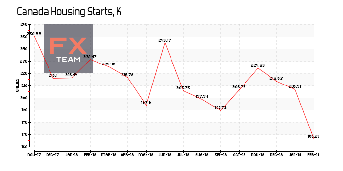 15:15 Закладки новых домов в Канаде, как ожидается, восстановятся до годового темпа 193 тыс. после резкого снижения в феврале к 173 тыс. – минимумам за 3 года. Строительная отрасль является важным индикатором экономического здоровья, поэтому значительные отклонения от ожиданий способны повлиять на котировки CAD.