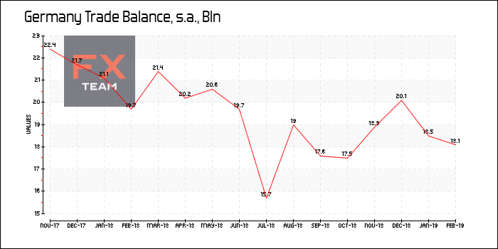 09:00 Торговый баланс Германии стабилизировался вслед за снижением курса евро с середины прошлого года. Теперь экономисты ожидают увидеть расширение положительного сальдо с 18.5 млрд. до 19.0, что может стать благоприятным сигналом для экономики и поддержать единую валюту.
