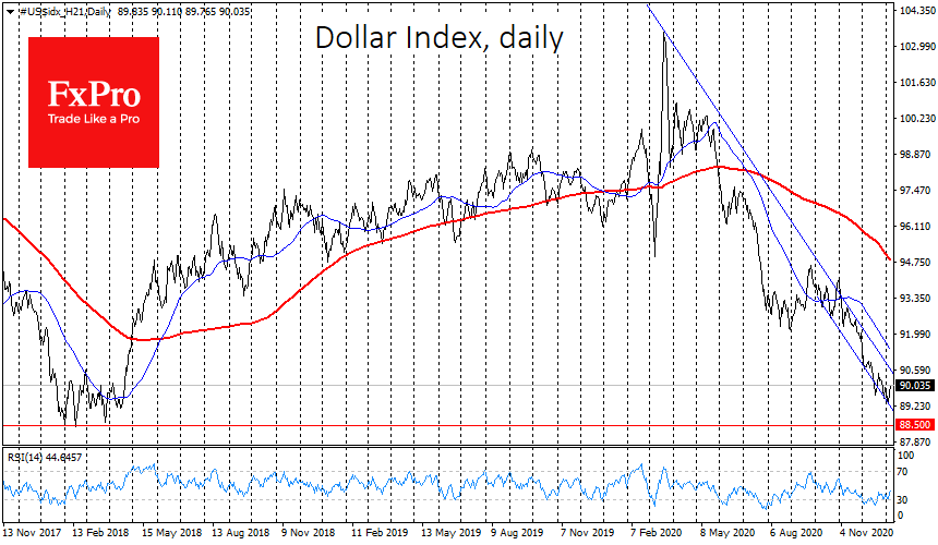 Со стороны технического анализа давление на доллар растеряло импульс после длительной перепроданности и при снижении к области минимумов почти за три года. Долларовым медведям может потребоваться значительная передышка и консолидация сил перед новой атакой.