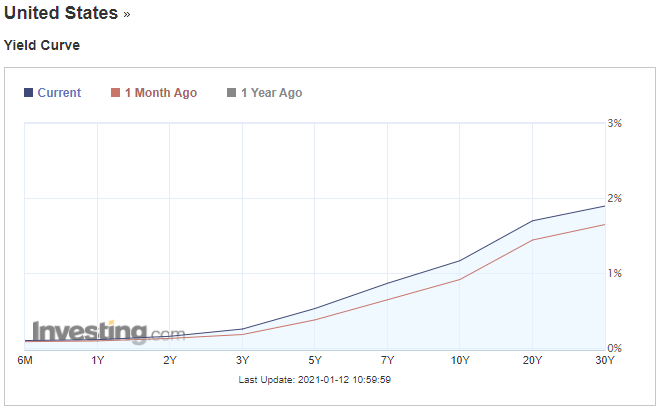 Текущие уровни предполагают, что ФРС приступит к повышению ставок уже к 2023 году. Вряд ли это точный макроэкономический прогноз: больше походит на реакцию рынка на ожидаемое изменение баланса спроса и предложения американских гособлигаций.