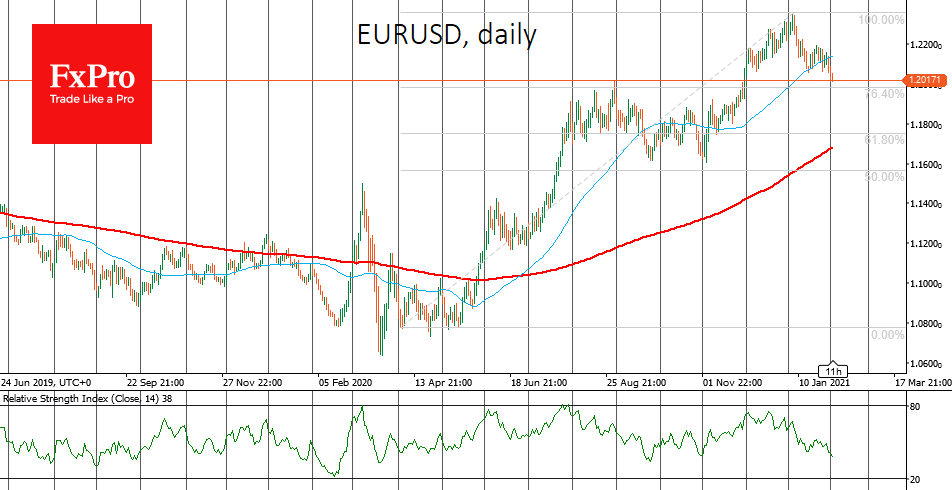 Тем временем EURUSD тестирует поддержку в области 1.2000, потеряв 2.5% спустя четыре недели снижения от пика на 1.2350 в начале января. Этот тренд по паре возвращает ее на тест важной области 1.1930-1.1950. Это бывшее сильное сопротивление и область коррекционного отката на 76.4% от восходящего тренда пары в предыдущие 10 месяцев. Развитие снижения вернет в фокус медведей уровень 1.1750.