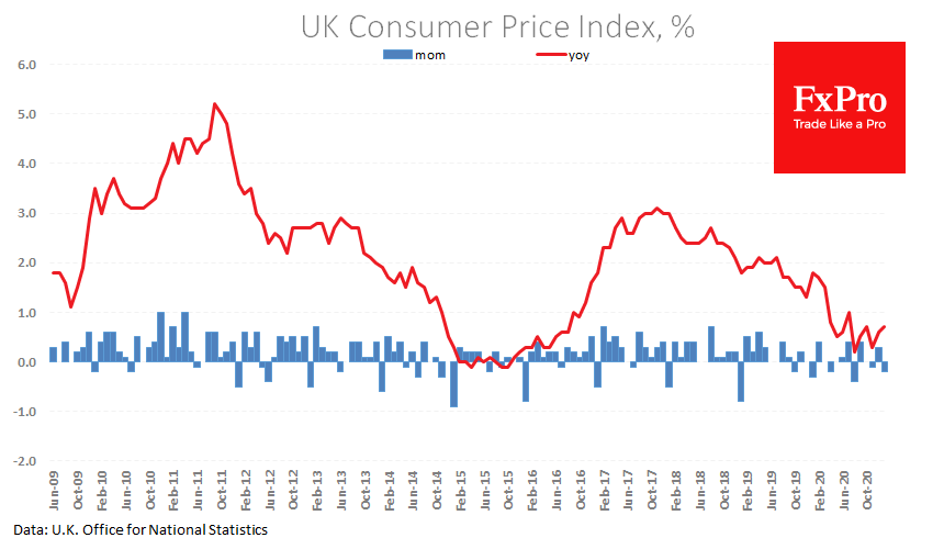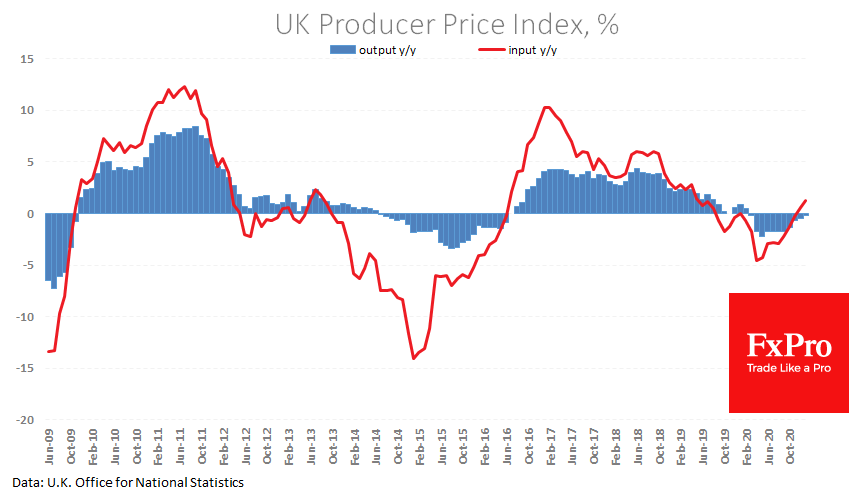Свежие данные по Соединенному Королевству дополнительно подтверждают эту гипотезу. Набор данных по ценам за прошлый месяц уверенно превысил ожидания. Индекс CPI в январе ускорился до 0.7% г/г, а индекс розничных цен поднялся до 1.4%.