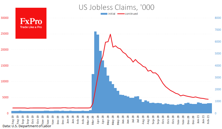 Недельные обращения за пособиями по безработице в США вышли серьезно слабей ожиданий, дополнительно подчёркивая важность правительственных пакетов стимулов. Число первичных обращений за пособиями за неделю по 13 февраля подскочило до 861 тыс. против прогнозов снижения к 775 тыс. Как и неделей ранее, прошлые данные были сильно ухудшены, до 848 тыс. против 793 тыс., которые были изначально.