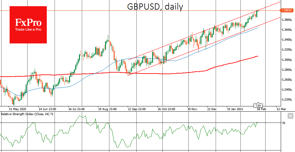 GBPUSD тестирует 1.4000 – психологически важный круглый уровень. С сентября прошлого года стерлинг демонстрирует устойчивый тренд роста, который в этом месяце ускорился.