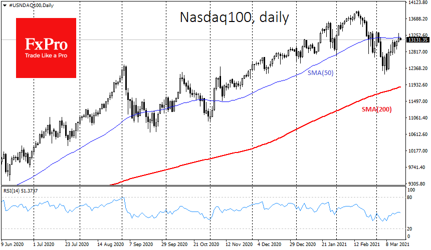 К концу сессии, однако, доходности американских гособлигаций продолжили повышаться, отняв у Nasdaq половину внутридневного роста, который на пике превышал 2.3%.