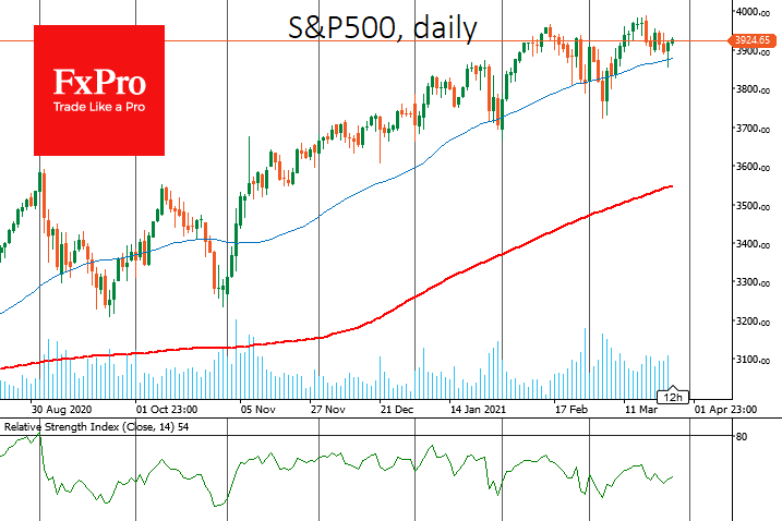 S&P500 в очередной раз получил поддержку покупателей на спаде под 50-дневную среднюю. Покупки происходили на повышенных объемах, дополнительно отражая уверенность быков.