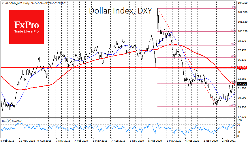 Впрочем, доллару еще предстоит подтвердить своё снижение. Прямо сейчас индекс доллара DXY к корзине из основных валют находится на 92.65, незначительно выше своей 200-дневной средней на 92.45. Провал под эту линию в ближайшие дни станет сигналом, что ранее мы видели ложный пробой. Такие ложные пробои – не редкость в последние годы, и больше внимания стоит уделять не формальному пересечению линии в ту или иную сторону, а динамике возле этой черты.