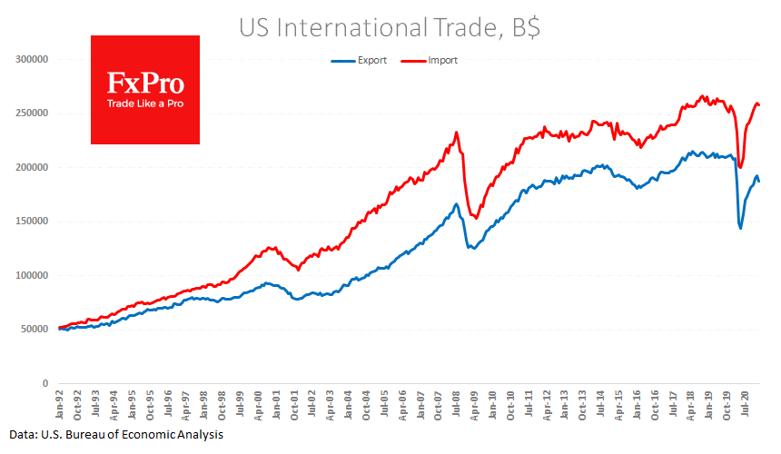 Падение экспорта, если окажется устойчивым, рискует стать отражением падающего глобального спроса, ведь далеко у всего мира есть доступ к безграничному спросу на долговых рынках для финансирования пакетов поддержки. И это плохие новости для спроса на рисковые активы, в первую очередь, для акций и сырья.