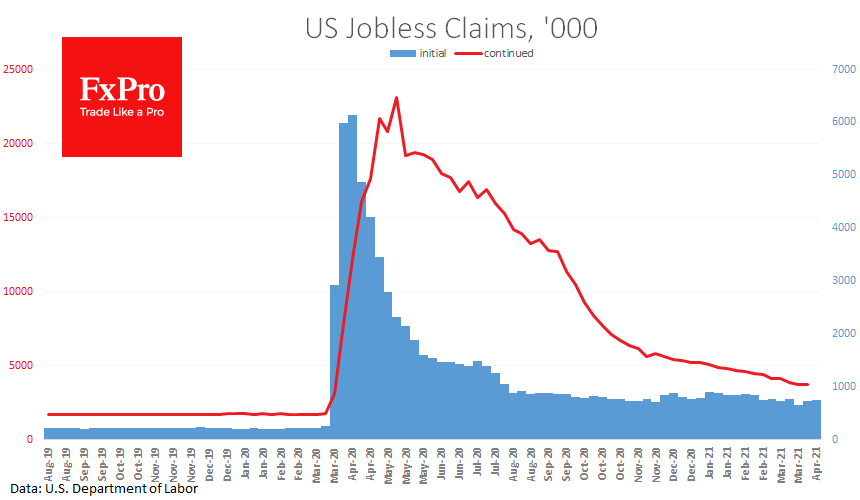 Число повторных обращений сохраняет тренд на снижение, но также не оправдывает ожидания. Свежий отчёт показал 3734 тыс. обращений после 3750 и 3841 в предыдущие две недели.