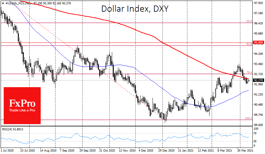 Вполне логично ожидать некоторого отката американских рынков от исторических максимумов и повышенную тягу в доллары. Уверенный рост американской валюты по итогам дня сегодня вернёт DXY выше 200-дневной средней и может отправить EURUSD обратно ниже 200-дневной SMA. Если за этим последует усиление покупок доллара, можно будет говорить о потенциале его дальнейшего роста в ближайшие недели.