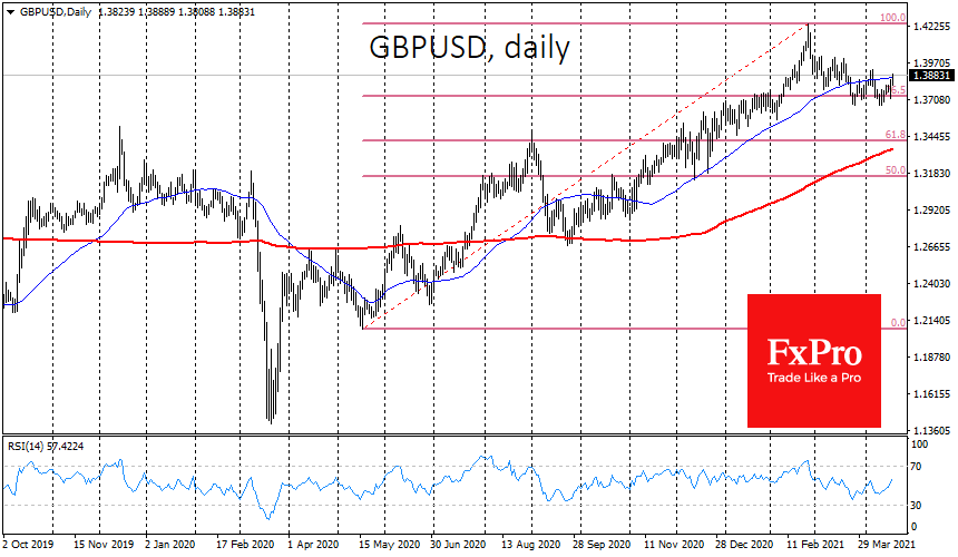 Зачастую, GBPUSD и USDJPY растут в периоды повышенного спроса на рисковые активы и падают при тяге инвесторов в тихие гавани. Сейчас мы видим дивергенцию в их динамике, что объясняется давлением на доллар.
