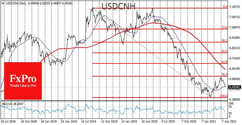 USDCNH развивает снижение, несмотря на попытки доллара прибавить в парах с европейскими валютами. Данная пара менее подвержена рыночному шуму и наглядно демонстрирует возобновление давления на доллар после двухмесячного отката.
