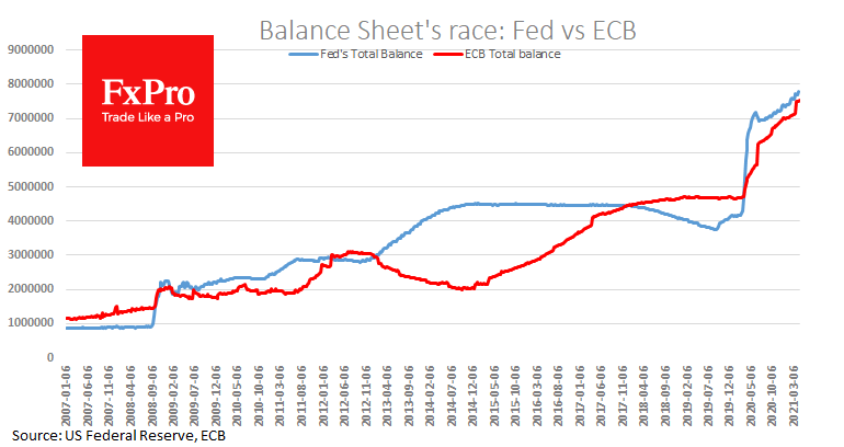 В частности, Лагард отметила, что рано обсуждать сворачивание стимулов. Как и в ФРС, в ЕЦБ указали на временный характер инфляции и предупредили, что будут смотреть сквозь ее ближайший всплеск.
