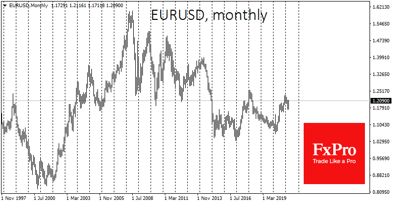 Возможно, в 2020 году по доллару мы видели такой же разворот, как в 2002. То есть сейчас, с небольшими коррекциями, это способно превратиться в тенденцию ослабления на годы. Ей под силу увести индекс доллара под минимумы 2008-го, когда он опускался до 70.