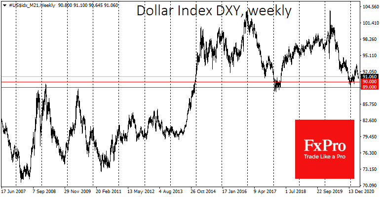 Однако в среднесрочной перспективе это негативный фактор для американской валюты, способный сломить мини-рост последних дней и поддержку восходящего тренда с января. Это откроет дорогу индексу доллара с текущих 91 на 90 (минимумы февраля) и далее – на 89 – область минимумов 2018 года.