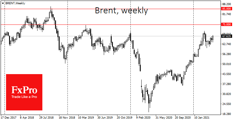 Спустя год после исторического сокращения добычи в рамках ОПЕК+, квоты остаются заметно пониженными, однако, цены уже превышают уровни до пандемии. Это результат искусственного ограничения добычи, которое не комфортно ряду участников. Нужно понимать, что повышение объемов будет сдерживать восхождение нефтяных котировок, не позволяя рассматривать уровни выше 80 как долгосрочно устойчивые.