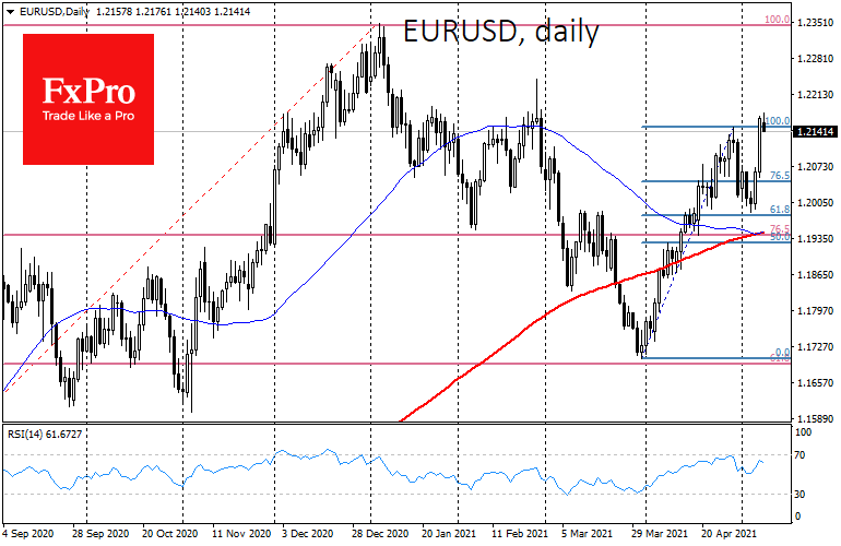 Резкое замедление роста занятости в апреле и огромная разница между фактическими данными и ожиданиями укрепили подозрения, что ястребы в ФРС поутихнут на время и не будут менять политику в ближайшем будущем, ссылаясь на неустойчивость восстановления.