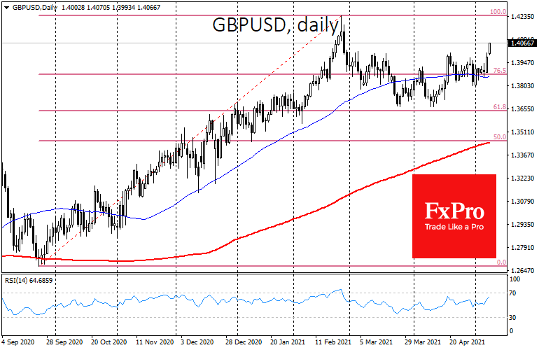 Для пары EURUSD на прицеле быков в этом месяце окажется область 1.2350, которая на две фигуры выше текущих уровней. Для GBPUSD, взявшей 1.4070 сегодня утром, вполне по силам в мае переписать максимумы на 1.4240, достигнутые в конце февраля.