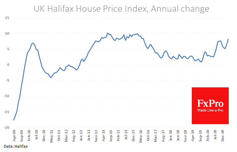 Также британскую валюту внутри дня поддерживают новости о продолжающемся буме на жилищном рынке. Индекс цен на недвижимость от Halifax вырос на 1.4% за апрель после роста на 1.1% в марте. Прибавив за 12 месяцев 8.2%, цены на жилье в Британии растут максимальным темпом за пять лет.