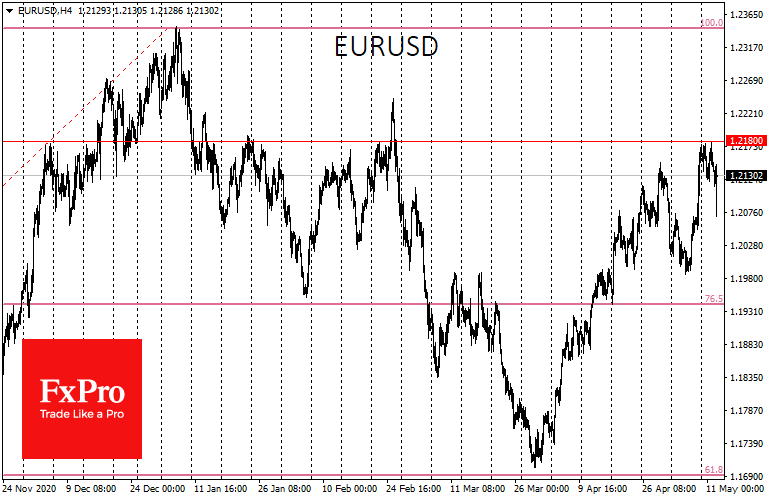 По EURUSD покупатели натолкнулись на давление медведей при подходе к 1.2180. Из этой области пара методично разворачивалась вниз последние четыре месяца. Нет ничего удивительного, что быкам приходится собираться с силами перед взятием локальных максимумов. На мощь долларовых медведей указывает то, что откат по паре похож на консолидацию после прыжка, нежели чем на разворот.