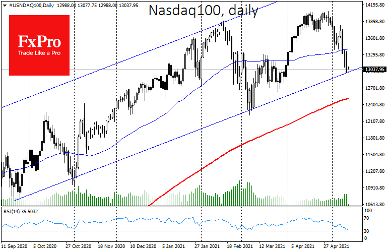 Индекс RSI на дневных графиках Nasdaq100 вчера опускался до 33, самого низкого значения с марта 2020. Это наглядное отражение давления продавцов, которое также заставляет смотреть на рынки с оптимизмом, предполагая, что локальная перепроданность привлечет покупателей, уверенных в долгосрочных перспективах экономики и рынка акций.