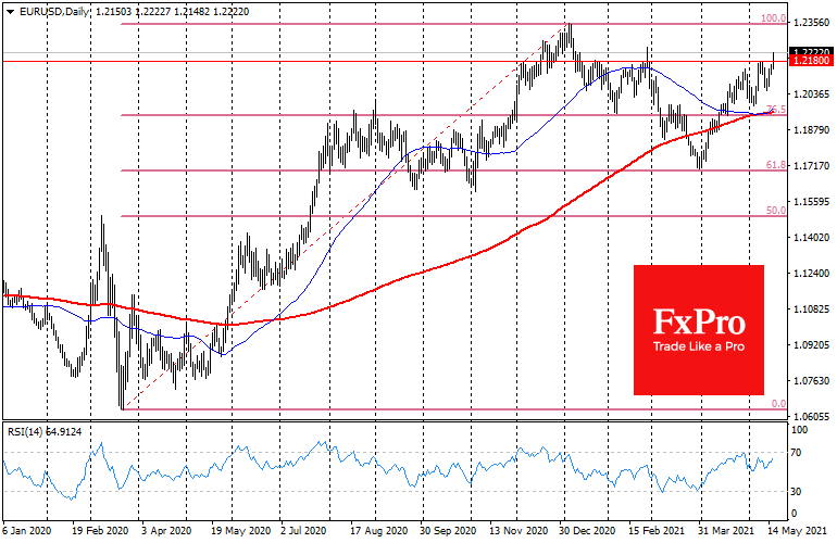 На рынках сейчас восстанавливается давление на американскую валюту, а также возрастает спрос на рисковые активы за счёт мягких комментариев ФРС. Ричард Кларида напомнил, что FOMC обязательно предупредит, прежде чем начнёт рассматривать сворачивание программы покупки активов на баланс ЦБ. Рафаэль Бостик попросту указал, что «сейчас не время» думать об изменении политики. Оба они соглашаются с тем, что рынок труда нестабильный, а потому давление на цены – временное явление.