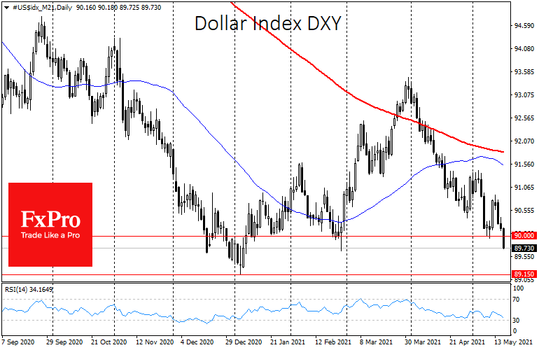 Все это сформировало негативный фон для американской валюты и позволило индексу доллара провалиться под 90: психологически важный круглый уровень, выступавший поддержкой в последние пять месяцев. Свои круглые уровни также взяли EURUSD и GBPUSD, где котировки перевалили через 1.2200 и 1.4200, соответственно.
